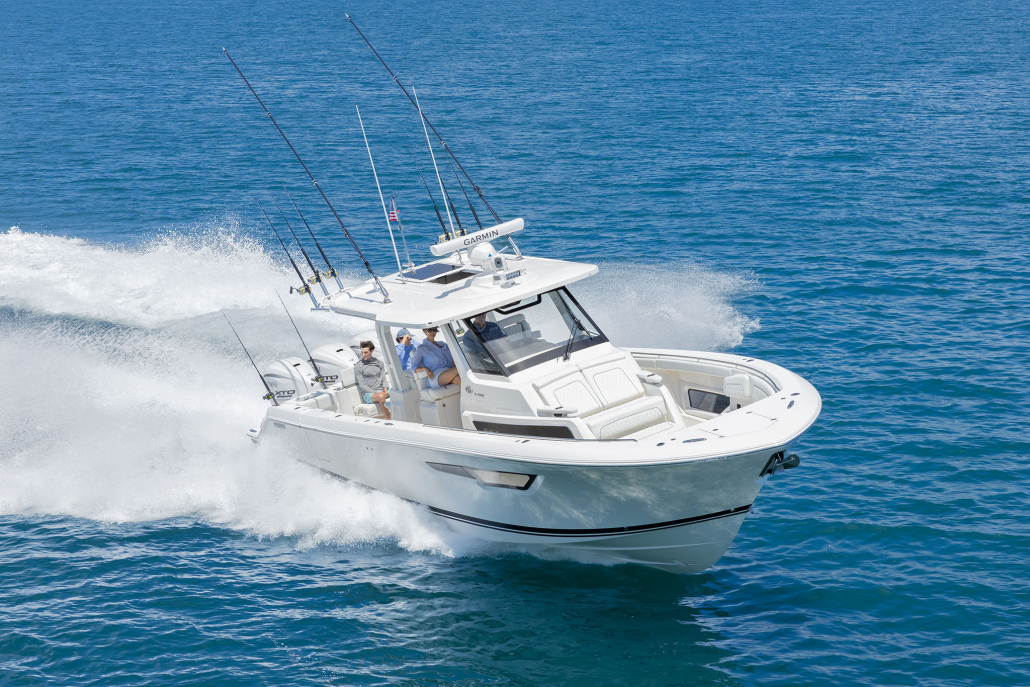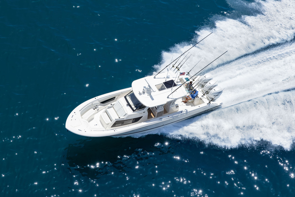 With an L.O.A. of 41’1″ and standard triple Yamaha® 450 XTO engines, she’ll turn heads before you even leave the slip. We’ve fine-tuned the experience for better views from the raised mezzanine—whether you’re at the stylish and cushy helm seat or standing while running to keep out of the elements where handholds and bolsters for leaning add to the security and comfort of the ride.